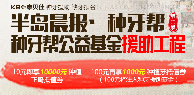 100元再享1000元种植牙抵值券(100元注入半岛晨报与康贝佳口腔的种牙援助基金)   我要优惠>>>