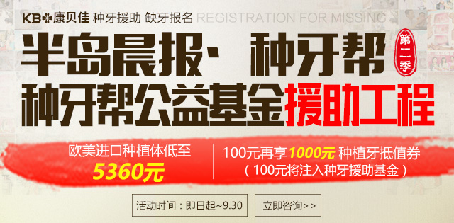 交100元抵1000元(100元注入半岛晨报与康贝佳口腔的种牙援助基金)